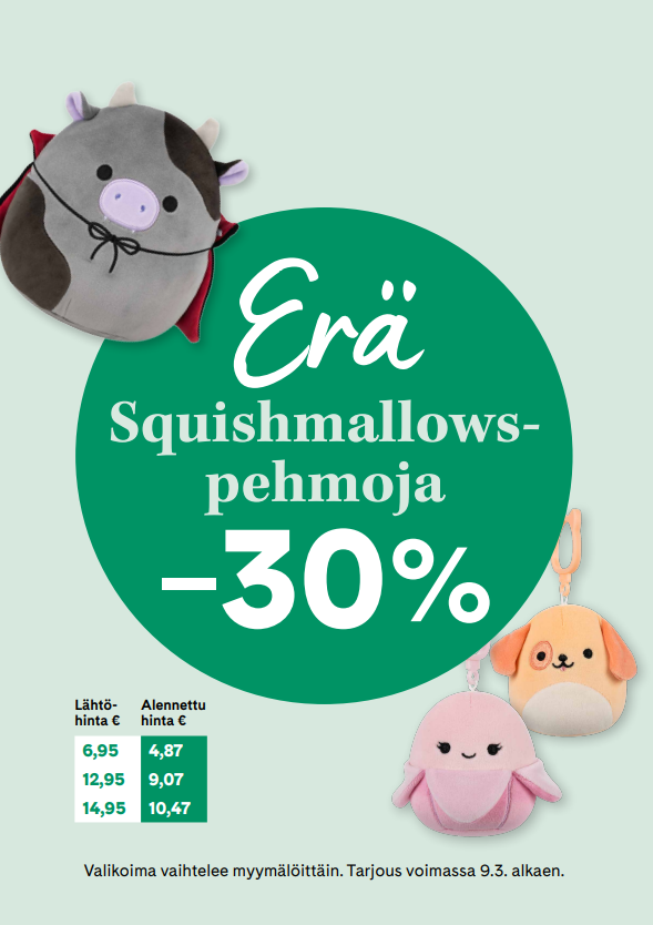 Erä ihania Squismallows pehmoja -30%.